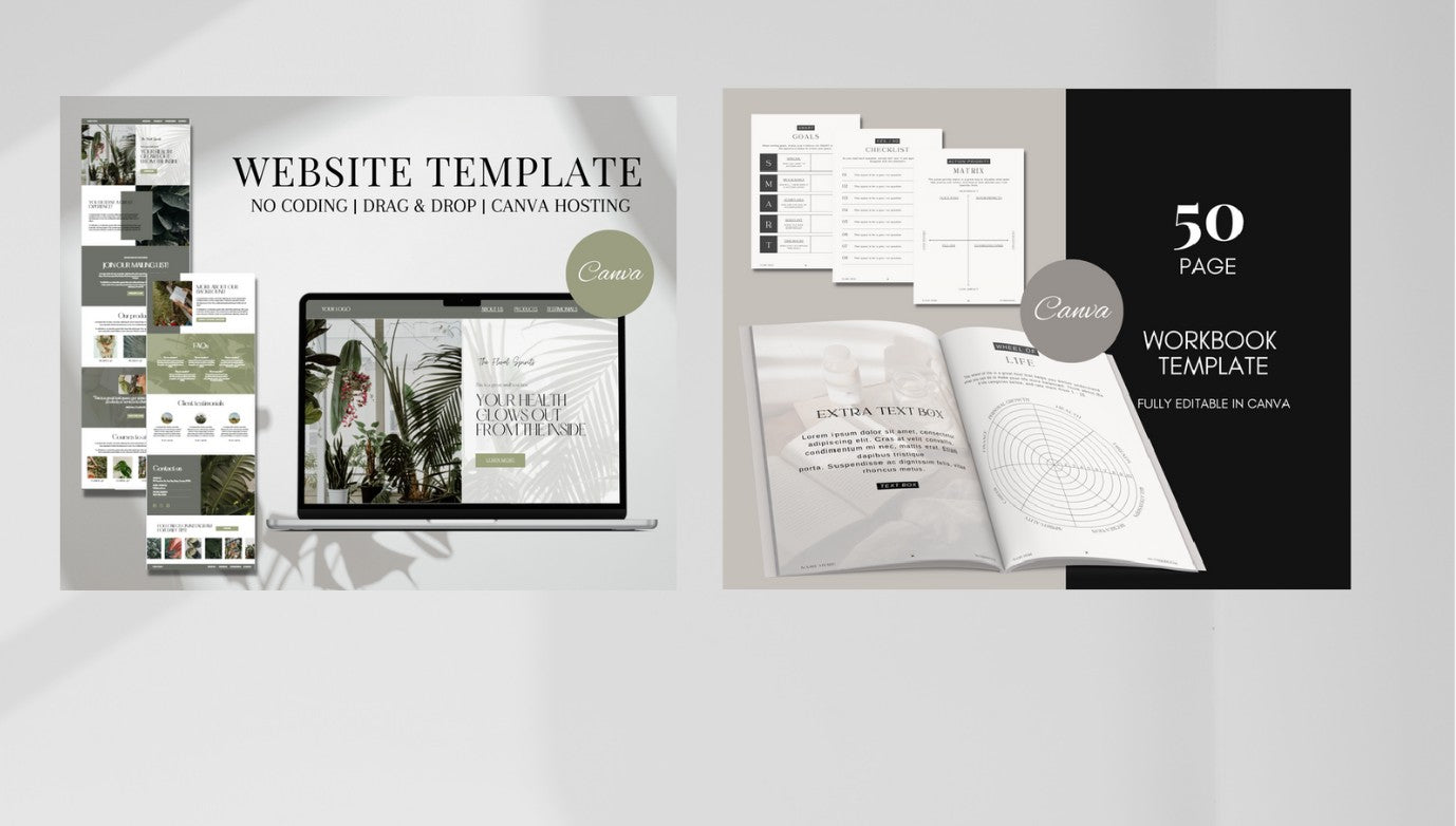 A website template for your website and a 50 page workbook template fully and completely editable.